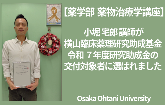【薬学部 薬物治療学講座】 小堀 宅郎 講師が 横山臨床薬理研究助成基金 令和 7 年度研究助成金の交付対象者に選ばれました