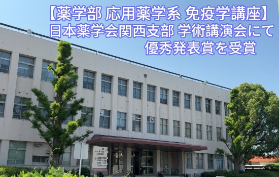 【薬学部 応用薬学系 免疫学講座】日本薬学会関西支部 学術講演会にて優秀発表賞を受賞