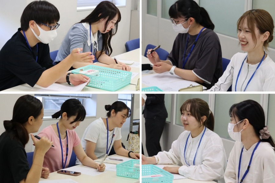 最初に四天王寺大学看護学部長の山崎尚美先生よりご挨拶を頂戴し、次に大阪大谷大学薬学部薬学科浦嶋庸子講師より、本日のワークショップのねらい、課題内容の説明のあと、アイスブレイクとして、10分間で、自己紹介をし、各学部に進学した理由など、お互いを知るところから始めました。