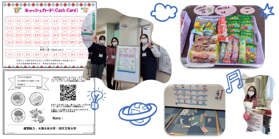 今回は、えいご村オリジナルのカードを使ってお菓子や文房具を購入して楽しむ企画や、100gになるように物をケースに入れ、最後にはかりで答え合わせをするゲームなど、盛りだくさんの内容でした。