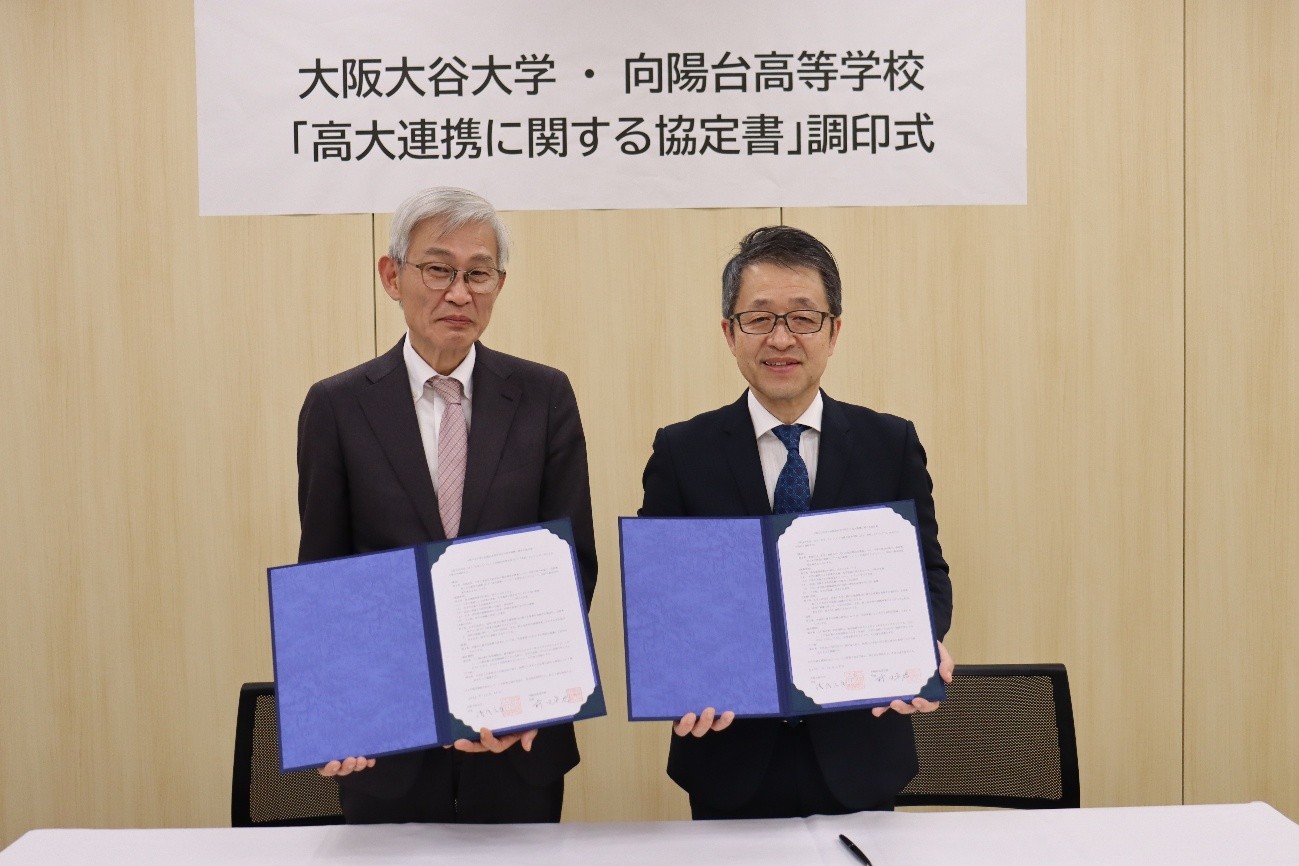 令和7年12月25日(木)に本学と向陽台高等学校との間で、相互の教育効果を高めることを目的とし、高大連携協定の調印式が行われました。