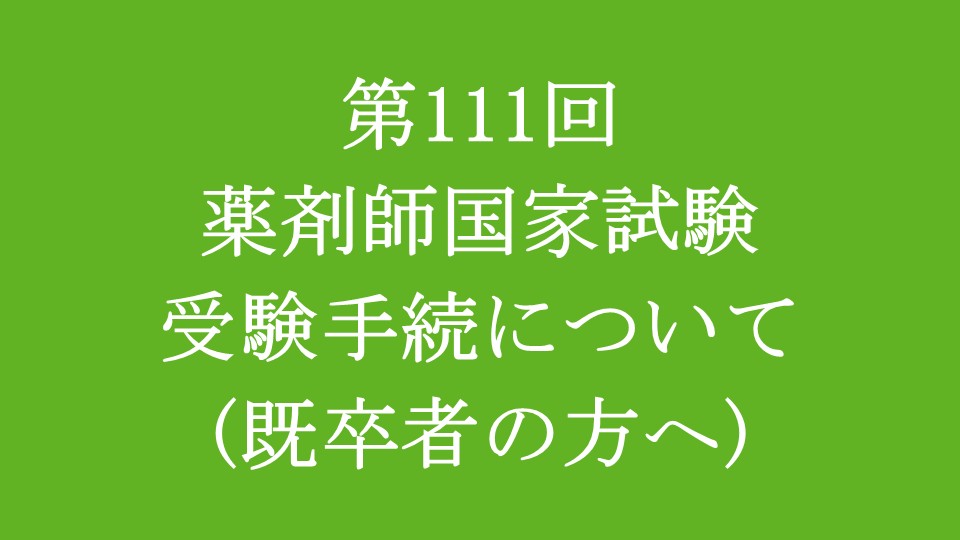 【薬学部】第111回薬剤師国家試験受験手続きについて(既卒者の方へ)