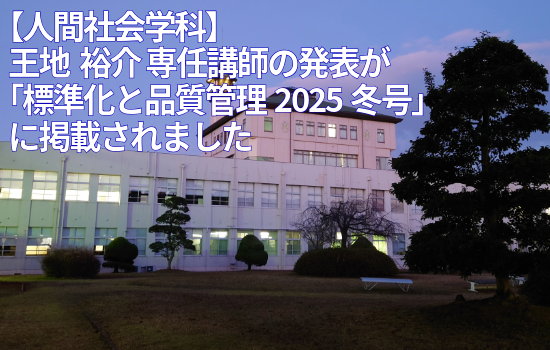 【人間社会学科】王地 裕介 専任講師の発表が「標準化と品質管理2025冬号」に掲載されました