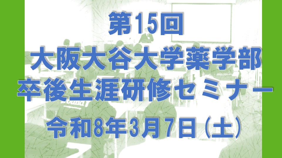 【薬学部】第15回「薬学部卒後生涯研修セミナー」のご案内3/7(土)