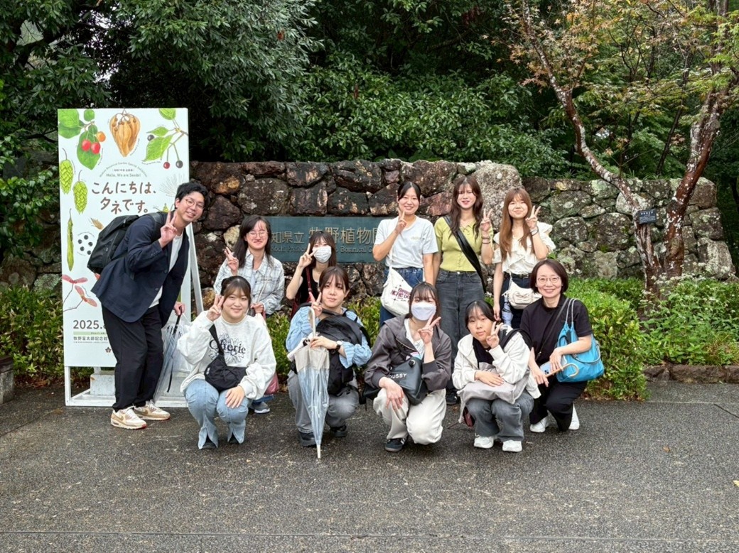 2025年10月3日から5日にかけて、アロマ部ParFumの薬学部生8名(1回生5名、2回生3名)と教育学部1回生1名が、顧問の朴准教授(薬学教育支援・開発センター)および窪木助教(有機化学講座)とともに高知県立牧野植物園を訪問しました。