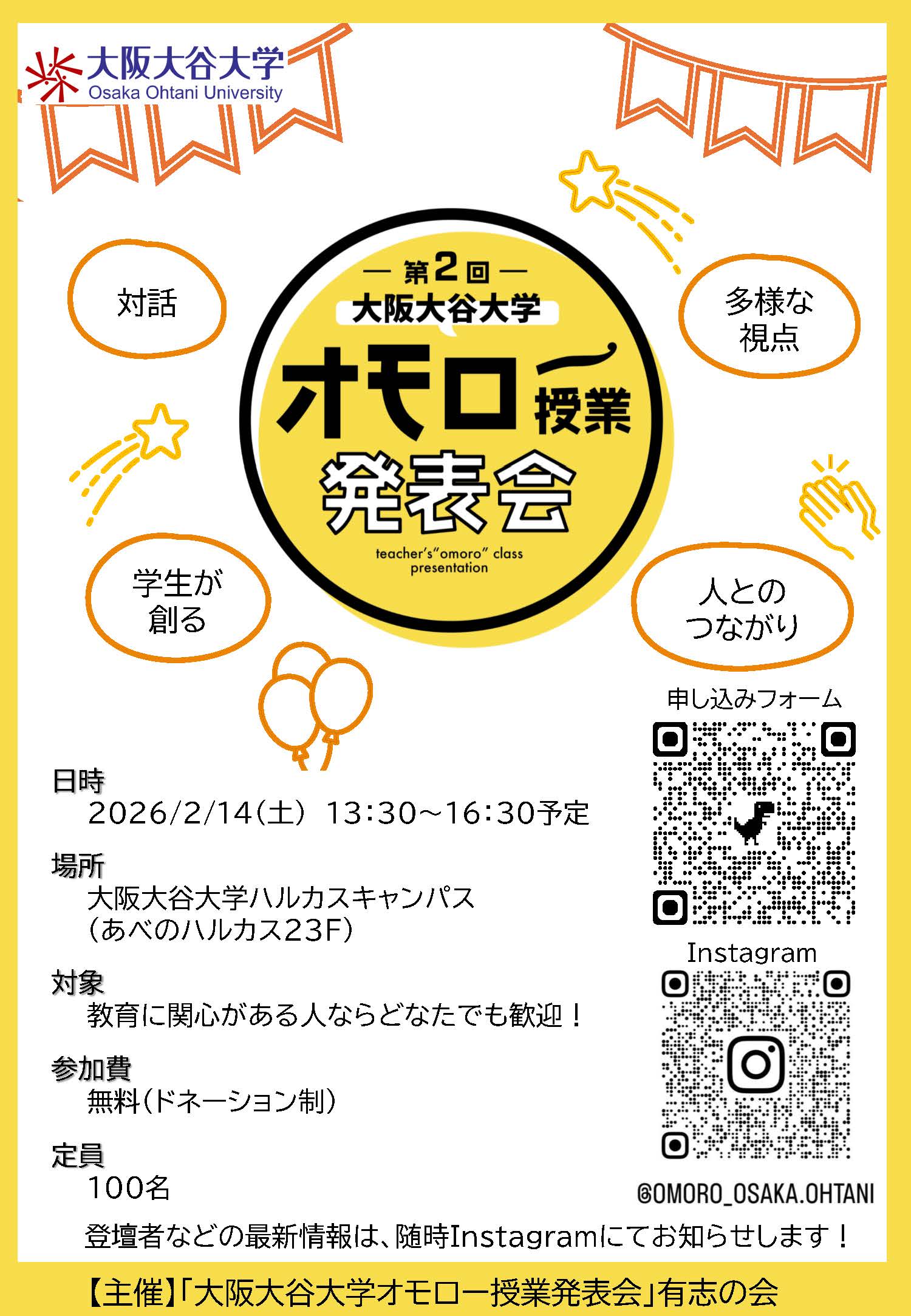 2026年2月14日(土)、大阪大谷大学ハルカスキャンパスにて「第2回 大阪大谷大学×オモロー授業発表会」を開催します。