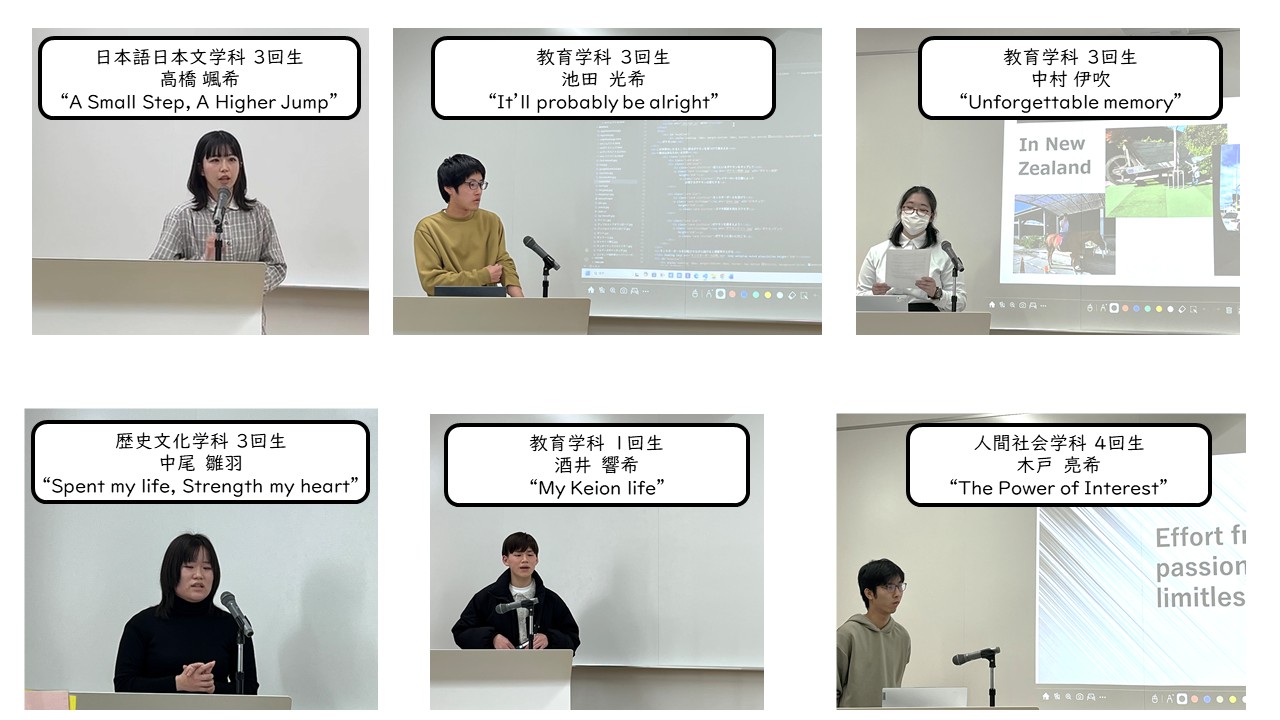 みなさん緊張しながらも、大学生活での経験や今後の挑戦について、英語でのスピーチを披露してくれました。